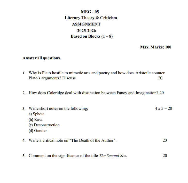 Tags: MEG-05 solved assignment 2025–26, IGNOU MEG-05 assignment, Literary Criticism and Theory IGNOU, MEG-05 English medium assignment, IGNOU MA English solved assignment, MEG-05 PDF download